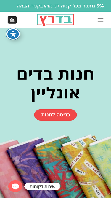 61%חנות בדים הגדולה בישראל, מגוון בדים איכותיים ומאות בדים למכירה. תרגישו את הבד עוד לפני הרכישה עם דוגמיות במשלוח עד הבית! לרכישה אונליין של כל סוגי הבדים היכנס