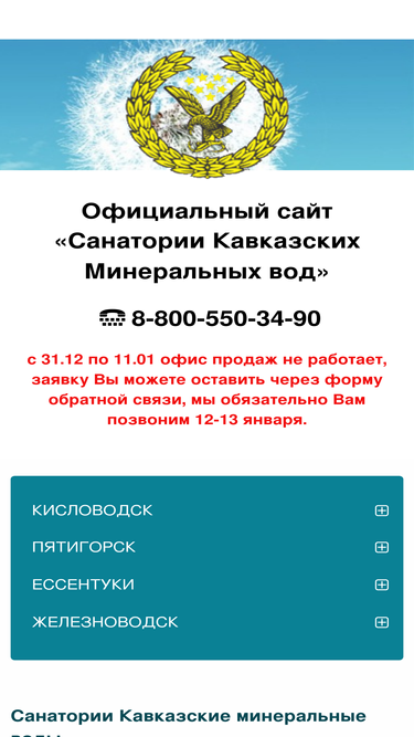 Официальные цены на санатории Ессентуков с лечением и бассейном, 3-х разовое питание "заказ-меню/шведский стол" > БЕСПЛАТНЫЙ ЗВОНОК Администратор 8-800-550-34-90 > Официальный сайт «Санатории Ессентуков Кавказских Минеральных вод»