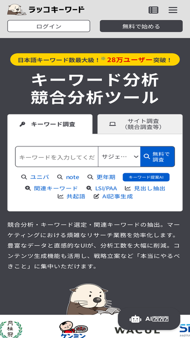 rdlp.jp занимает четвертое место по схожести с lancers.jp, а rakkokeyword.com — пятое. rdlp.jp и rakkokeyword.com посетили169.2K и 403.4K пользователя(-ей), по данным на ноябрь 2025, соответственно.