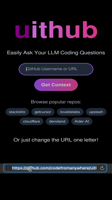 76%Change just one letter and get github repo context to use as context for your LLM.