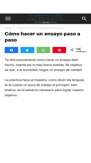 60%Te diré exactamente cómo hacer un ensayo bien hecho. Intenté ser lo más breve posible. Mi objetivo es que, a la brevedad, hagas un ensayo de calidad. La práctica hace al maestro, como dicen las lenguas. Si te cuesta un poco de trabajo al principio, sólo analiza, es el esfuerzo necesario para lograr nuestro objetivo. ¿Qué es un ensayo y sus pasos para elaborarlo? Definición de ensayo: (Ir al texto Teoría del ensayo, de José Luis Gómez Martínez) Más adelante, este autor hace referencia a que la voz “ensayo” (o “ensaye”), significa prueba, reconocimiento, examen. Pero ¿examen de qué? Nada más y