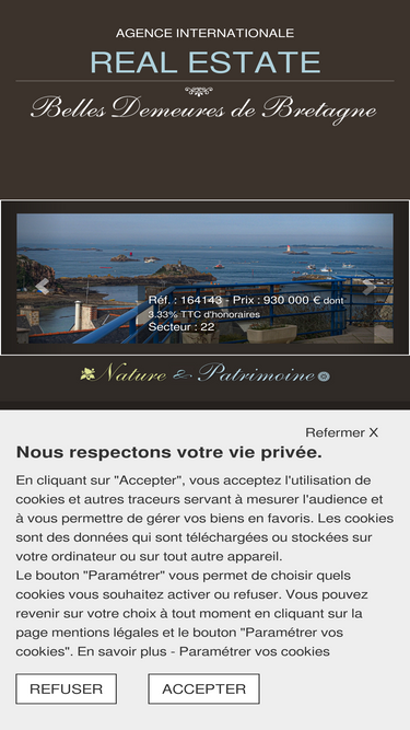 93%Découvrez des propriétés d'exception en Bretagne : manoirs, châteaux, maisons de pêcheurs. Spécialistes du patrimoine et de la nature. Estimation en ligne