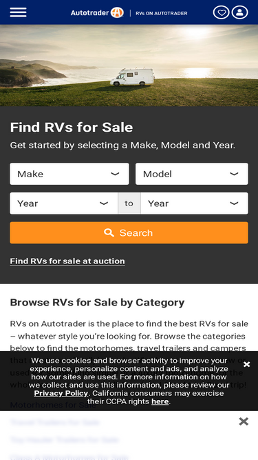 83%RVs on Autotrader - the premier marketplace to buy & sell motorhome and travel trailer RVs. Search for RV events and RV shows, find RV reviews, articles, and news.