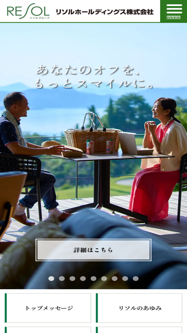 95%リソルグループは「あなたのオフを、もっとスマイルに。」を仕事のすべての価値基準としています。各事業を通じて、お客様に心から喜んでいただけるサービスを提供し、たくさんのスマイルづくりに努めています。