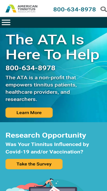 100%Welcome ATA Members! Thank you for being a member of the American Tinnitus Association. Members are the cornerstone of our organization. We appreciate your support in our ongoing mission to find a cure for tinnitus. If you need to renew your ATA membership click here.