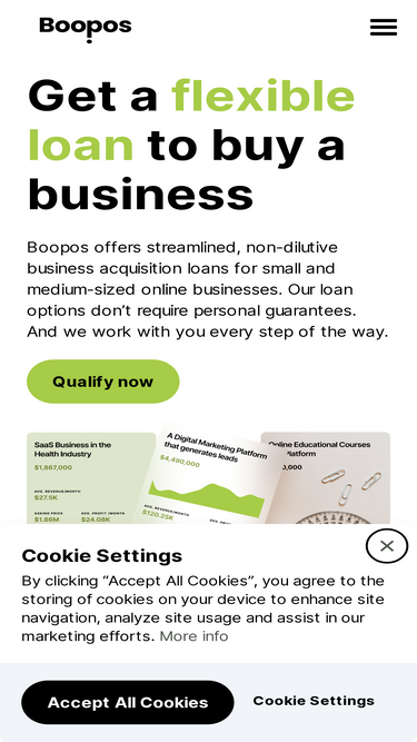 100%Are you looking to acquire an online business? Boopos offers business acquisition loans that are fast & flexible. Apply now and get funded quickly!