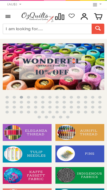 91%australian business featuring a huge range of quality patchwork, quilting, knitting, crochet, embroidery and craft products. free postage for orders over au$150 australia -wide! quilt batting/wadding, swarovski hotfix crystals, electric quilt, matilda's own templates and rulers, creative grids rulers, ez quilting rulers, cotton threads, silk threads, fabric, books, patterns, marti michell rulers and templates, daylight lamps, huge range of bag patterns including moon shine designs, quiltworx foundation piecing patterns, amy butler, aunties too, jaybird quilts and lazy girl designs, specialty rulers, patchwork templates, aboriginal fabrics, batik, machine embroidery threads.....and we frequently add new products!
