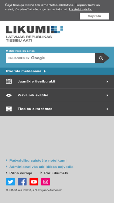 70%tiesību akti un to izmaiņas: visi jaunumi un arhīvs. sistematizēti tiesību akti. plašas meklēšanas un personalizētās iespējas. vietni uztur „latvijas vēstnesis”