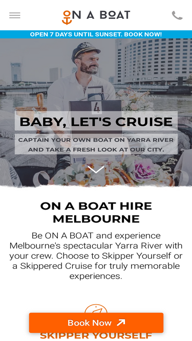 76%ON A BOAT Hire Melbourne to captain your own boat on Melbourne's beautiful Yarra River (no licence required). Up to 9 people. BYO drinks/snacks. Pet friendly!