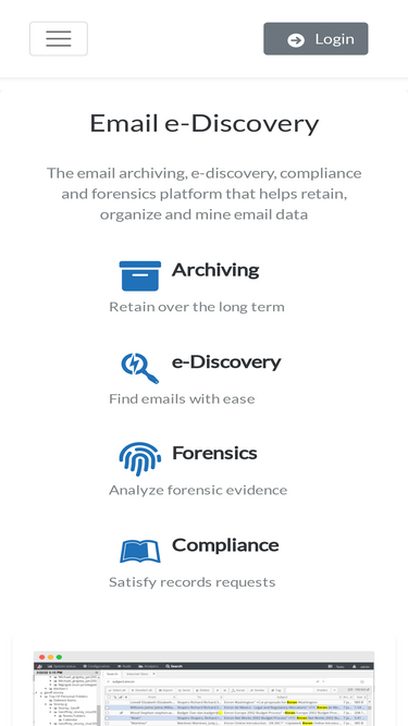 Email archiving, e-discovery, compliance and forensics software that helps retain, organize and mine email data