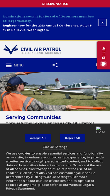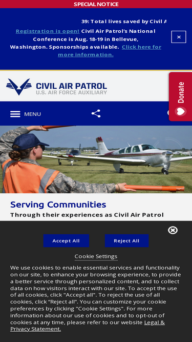 Civil Air Patrol is the official auxiliary of the U.S. Air Force and a 501(c)(3) non-profit organization. We're volunteers serving America's communities, saving lives, and shaping futures.