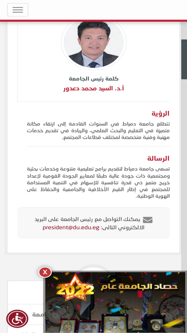 88%...تتطلع جامعة دمياط خلال الخمس سنوات القادمة إلى ارتقاء مكانة متميزة في التعليم والبحث العلمي