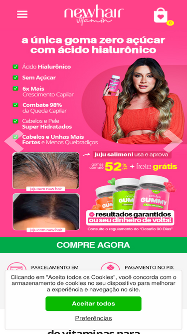 85%Ao garantir 12 potes hoje, você recebe 1 joia especial. A Vitamina para Cabelos, Pele e Unhas com Ácido Hialurônico combina 12 vitaminas, 5 minerais, biotina e ácido hialurônico para fortalecer cabelos e unhas e manter a pele hidratada e radiante. Perfeita para quem deseja resultados prolongados e uma rotina completa de beleza com apenas uma cápsula por dia.