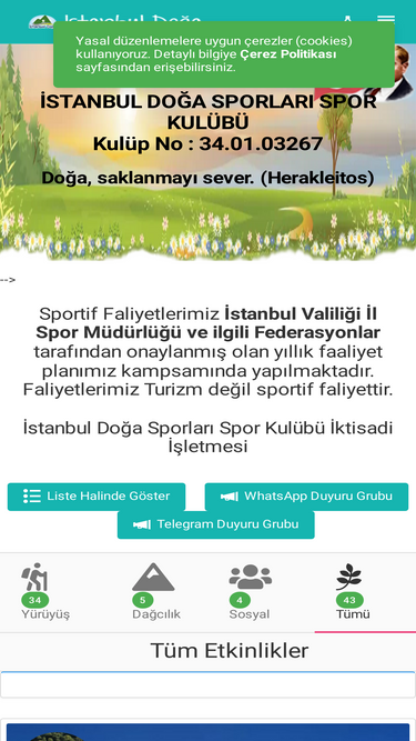 69%İstanbul Doğa Sporları Spor Kulübü, doğa yürüyüşleri (Trekking, Hiking) ve dağcılık başta olmak üzere birçok doğa sporunu organize eder.