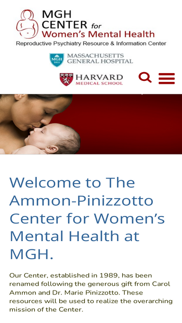77%Ammon-Pinizzotto Center forWomen’s Mental Health at MGH Discover the latest research in women's mental health and understand how these discoveries impact everyday treatment decisions. Our resources help patients and clinicians to work collaboratively to achieve the best clinical outcomes. Women’s Mental Health Across the Life Cycle From our Blog Get the latest news in women’s
