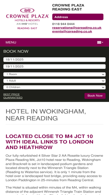 100%4 silver star 2aa rosette crowne plaza reading east hotel in wokingham near reading, bracknell, berkshire offering conference, wedding & events.