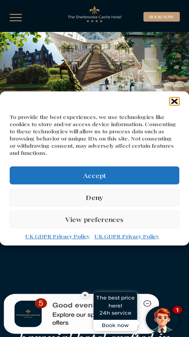 94%At Sherbrooke Castle as we only host one wedding per day with suites and packages to suit all celebrations. The Hotel is the perfect venue for your special day.