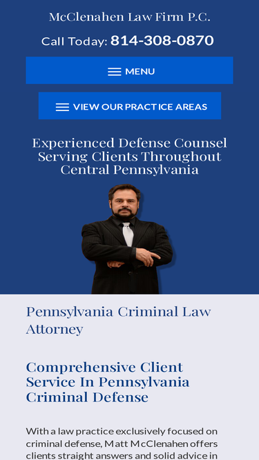 98%contact criminal defense attorney matt mcclenahen in state college, pennsylvania, for dependable advice about resolving summary offenses, misdemeanors or felony charges. call 814-308-0870.