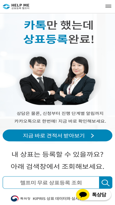 100%헬프미 상표등록 서비스 절차안내 페이지입니다.