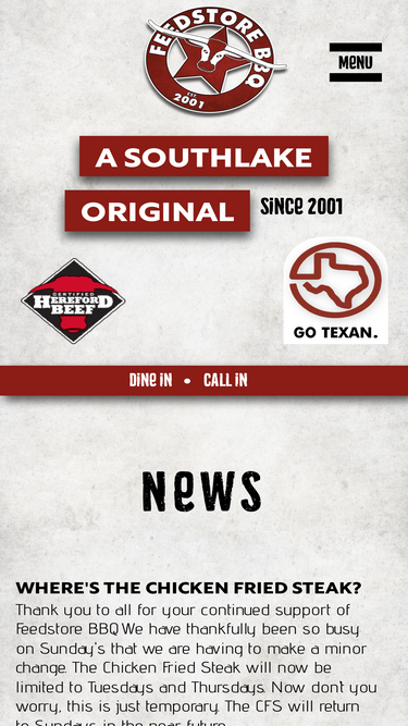 Feedstore BBQ has been serving the Southlake and surrounding communities with the best quality meats and sides since 2001. Dine-in or Carryout. Come see us! (817) 488-1445