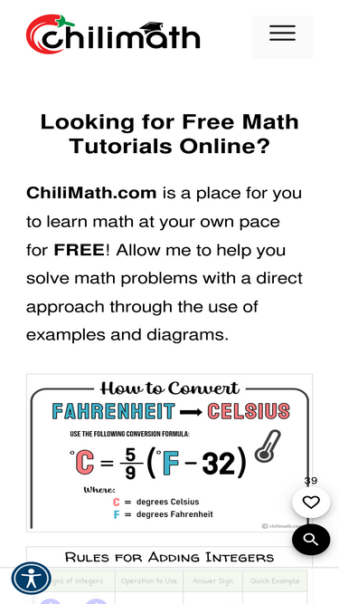 87%Accessibility Statement Accessibility Statement – auto Accessibility Statement for www.chilimath.com EqualWeb is committed to promoting web accessibility for people with disabilities. We are continually improving the user experience for all site visitors and applying the relevant accessibility standards. EqualWeb has taken careful measure to ensure an excellent user experience, regardless of the assistive technology being...