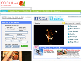 99%the official maui vacation travel site, with information on maui hotels, vacations and activities, maui weddings, maui hawaii real estate, maps, vacation rentals, maui classifieds and news. whether you're looking for things to do on your next maui resort vacation or you are a local to the islands of hawaii - we are all things maui! travel to the pacific paradise.