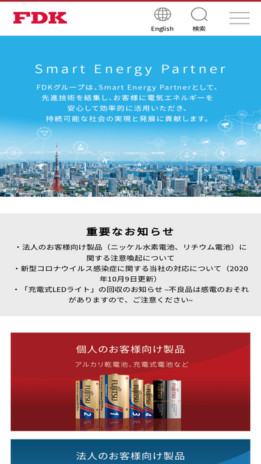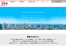 FDK株式会社の公式ウェブサイトです。FDKグループはSmart Energy Partnerとして、各種電池およびパワーソリューションで持続可能な社会の実現と発展に貢献します。本ウェブサイトでは、FDKの製品情報や会社情報、研究開発、投資家・IR情報、採用情報、サステナビリティなどをご紹介します。