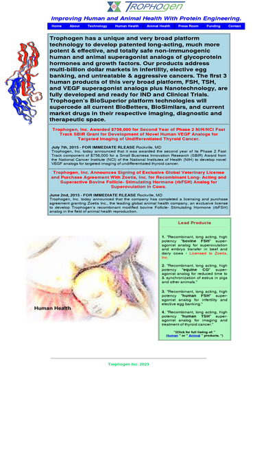 trophogen inc webpage.