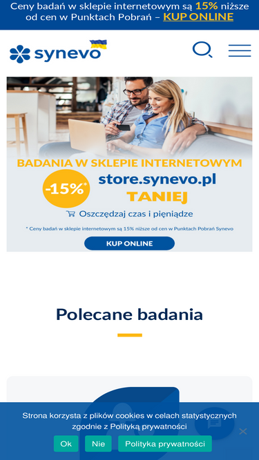 77%Laboratorium Synevo w Krakowie: badania krwi, moczu, kału i genetyczne. Wyniki online 24/7, bez skierowania. Wybierz punkt pobrań i zamów badania online w Synevo.