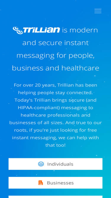 100%trillian is easy-to-use, hipaa-compliant instant messaging for people, business, and healthcare. send messages, share files, and much more!