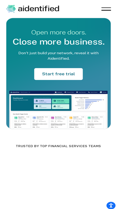 81%Unlock your ideal network with Aidentified’s powerful SaaS platform. Discover, connect, and engage with key prospects using detailed filters, mutual connections, and timely updates to boost referrals and enhance client interactions.