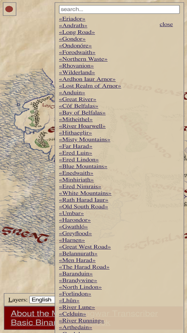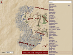 72%a large (32,768 pixels tall and wide), interactive map of middle-earth (ennorath) labeled in alternately english or elvish (sindarin / tengwar)