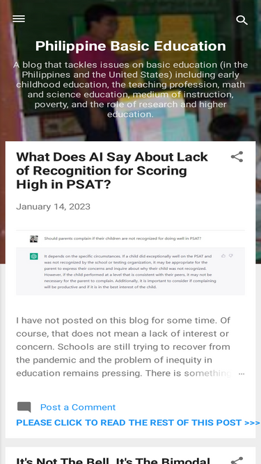 84%A blog that tackles issues on early childhood education, the teaching profession, math and science education, poverty, DepEd's K -12