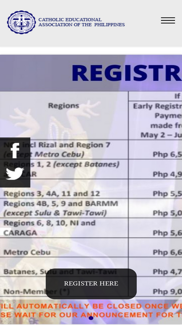 The Catholic Educational Association of the Philippines (CEAP), founded in 1941, is the national association of Catholic educational institutions. Today, it represents over 1,525 member schools and more than 120 superintendents through regional associations across all 17 regions of the Philippines.