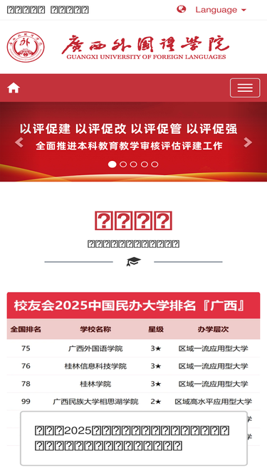 89%广西外国语学院是教育部批准成立的全日制普通二本高校,是广西唯一独立建制的外语类普通本科高校。2018年顺利通过教育部本科教学工作合格评估。2021年获批立项建设新增硕士学位授予单位。