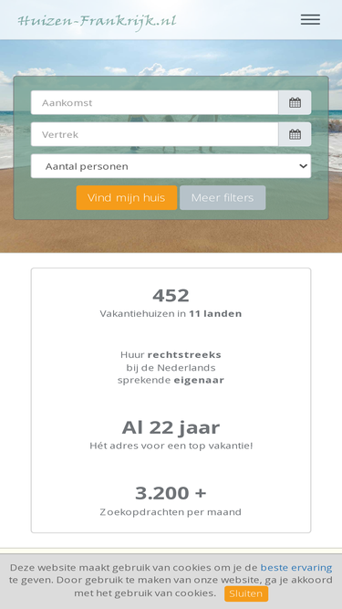 79%www.huizen-frankrijk.nl is speciaal voor huurders en verhuurder van franse woningen en vakantiewoningen. 790 vakantiehuizen in frankrijk te huur. u heeft direct contact met de eigenaar en betaald op die manier dus nooit te veel! via www.huizen-frankrijk.nl kunt als huurder op zoek naar een particuliere vakantie accommo