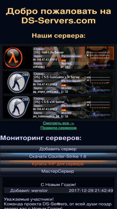 78%сервера cs россия, мониторинг серверов украины, белоруссии, россии, игровые серверы европа и снг. мониторинг игровых серверов counter strike, сервера майнкрафт. серверы cs go. сервера cs 1.6. сервера minecraft. серверы teamfortress 2. список серверов left4dead 2. серверы half life