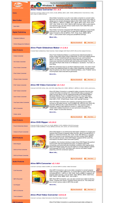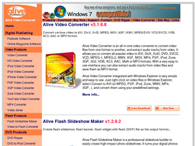 86%alivemedia - provides multimedia software for the conversion, recording, ripping, burning and editing of various audio and video formats. they are video converter, dvd ripper, mp4 converter, ipod converter, ipad video converter, iphone video converter, hd video converter, zune video converter, 3gp converter, psp video converter, video to flash converter, mp3 recorder, mp3 converter, video joiner