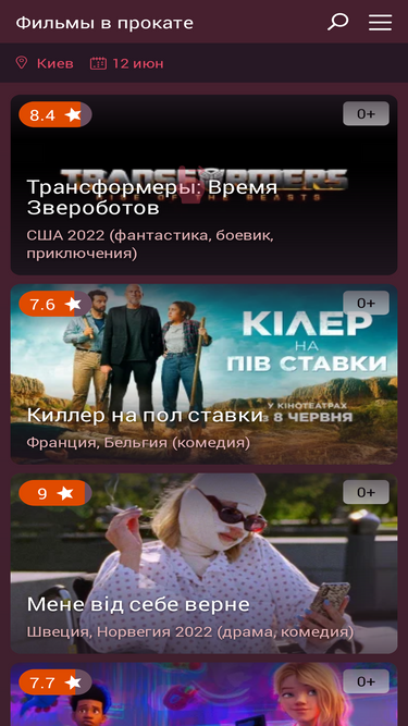88%Новости кино, актеры, новинки проката, расписание сеансов кинотеатров и много другое