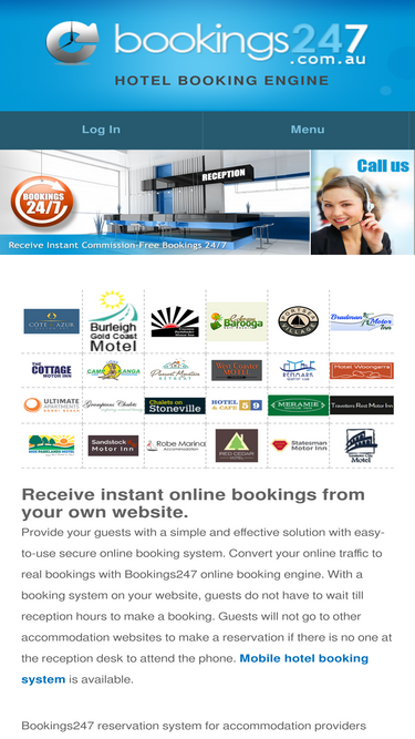 85%hotel booking system (bookings247) offers easy solutions for hotels, apartments and other accommodation types with option of integrating with payment gateway such as paypal, eway, commweb.