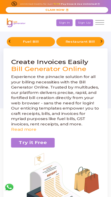 66%use bill generator online to create secure bills and invoices effortlessly online. enjoy unlimited usage, pdf delivery, and a wide selection of templates. start now.