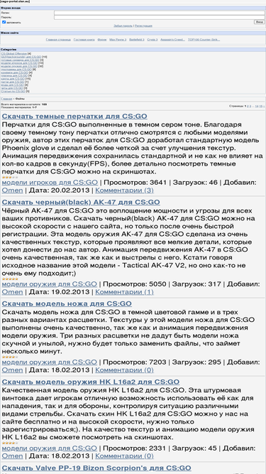 89%портал посвященный игре counter-strike. в частности отдельной линейке counter-strike global offensive. на сайте файловый архив, полезная информация для игроков, статьи. все необходимое для cs go, карты, модели оружия, скины игроков, модификации, дополнения.