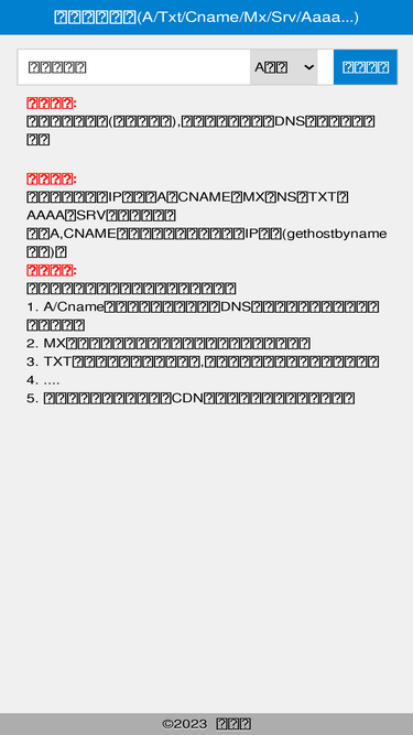 87%域名a記錄查詢,域名txt記錄查詢,域名cname記錄查詢,域名mx記錄查詢;域名解析,解析記錄查詢;站長實用工具。