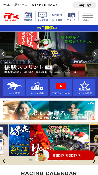 TCK (TOKYO CITY KEIBA) is easily accessible from Haneda Airport, and there’s always something fun to enjoy, like exciting Twinkle Races (nighttime horseraces), fantastical illuminations, and plenty of delicious food options. Come and have the night of your life here at our Tokyo racetrack!