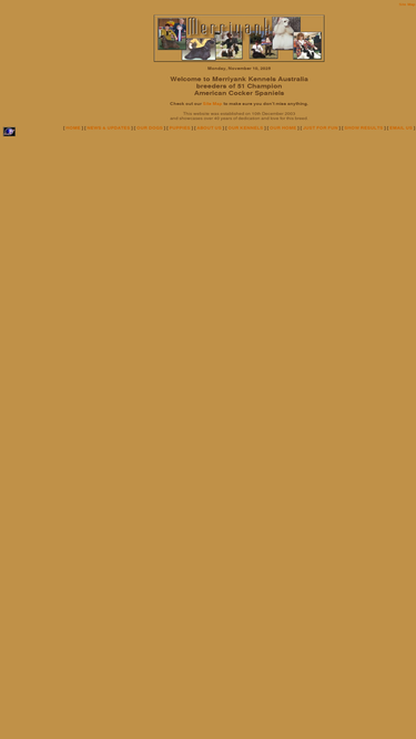 98%best in show winning american cocker spaniels past and present, photos, pedigrees and details of merriyank kennels.