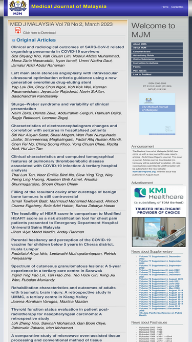 81%medical journal of malaysia is a scientific journal, published quarterly and can be found in medical libraries in many parts of the world. the journal also enjoys the status of being listed in the index medicus, the internationally accepted reference index of medical journals.
