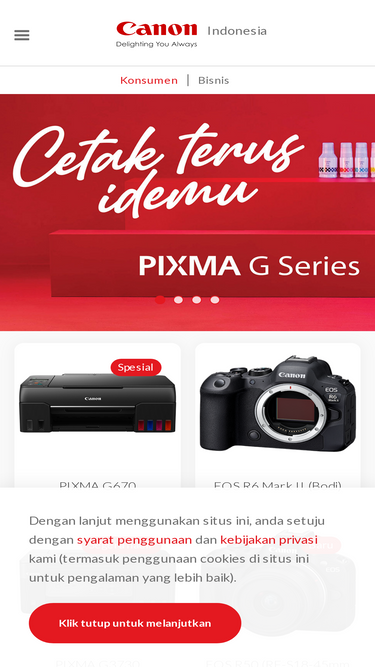 90%Penerimaan Dengan mengakses halaman apapun pada Situs web Canon, Anda setuju untuk terikat dengan kebijakan privasi ini. Kebijakan Privasi ini dapat diperbarui ...