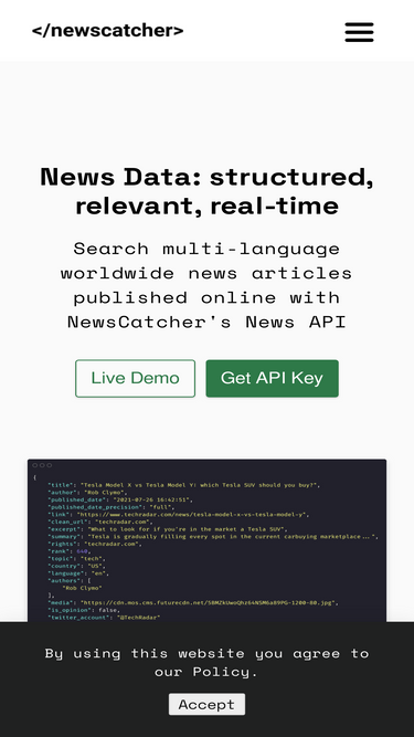 91%Review NewsCatcher’s Terms and Conditions to understand the rules, policies, and legal agreements for using our platform