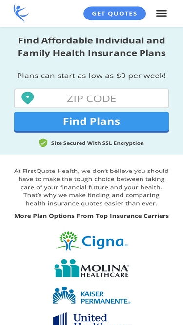 Compare health insurance quotes from the top companies in the country for free! Find cheap and affordable individual and family plans and get covered today.