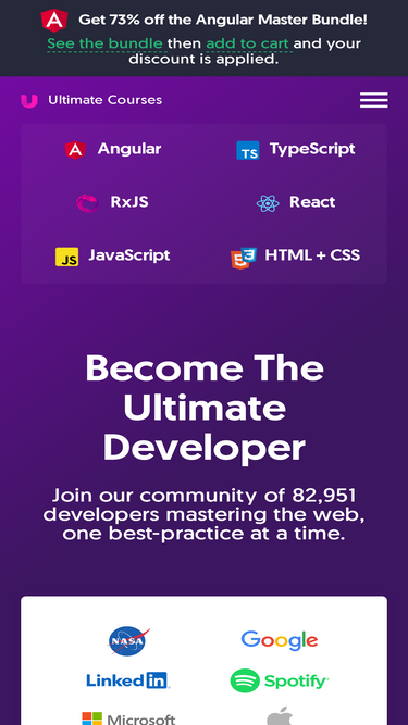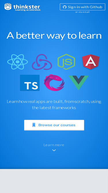 98%the best place on the web for tutorials and screencasts covering the best tools, libraries, and frameworks for modern javascript web developers implementing educational science to learn angular, react, .net, rxjs, vuew, swift, mean, and more!